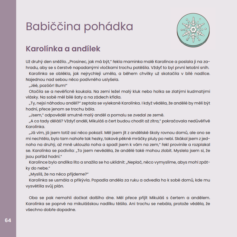 České Vánoce patří k nejkrásnějším svátkům na světě. Jsou plné tradic, omamných vůní, chutí, pohádkových příběhů, ale hlavně rodinné pohody a lásky. Pojďte si toto všechno s dětmi připomenout vánoční knihou Babička a dědeček vypráví o Vánocích, která by neměla chybět v žádné rodinné knihovně.