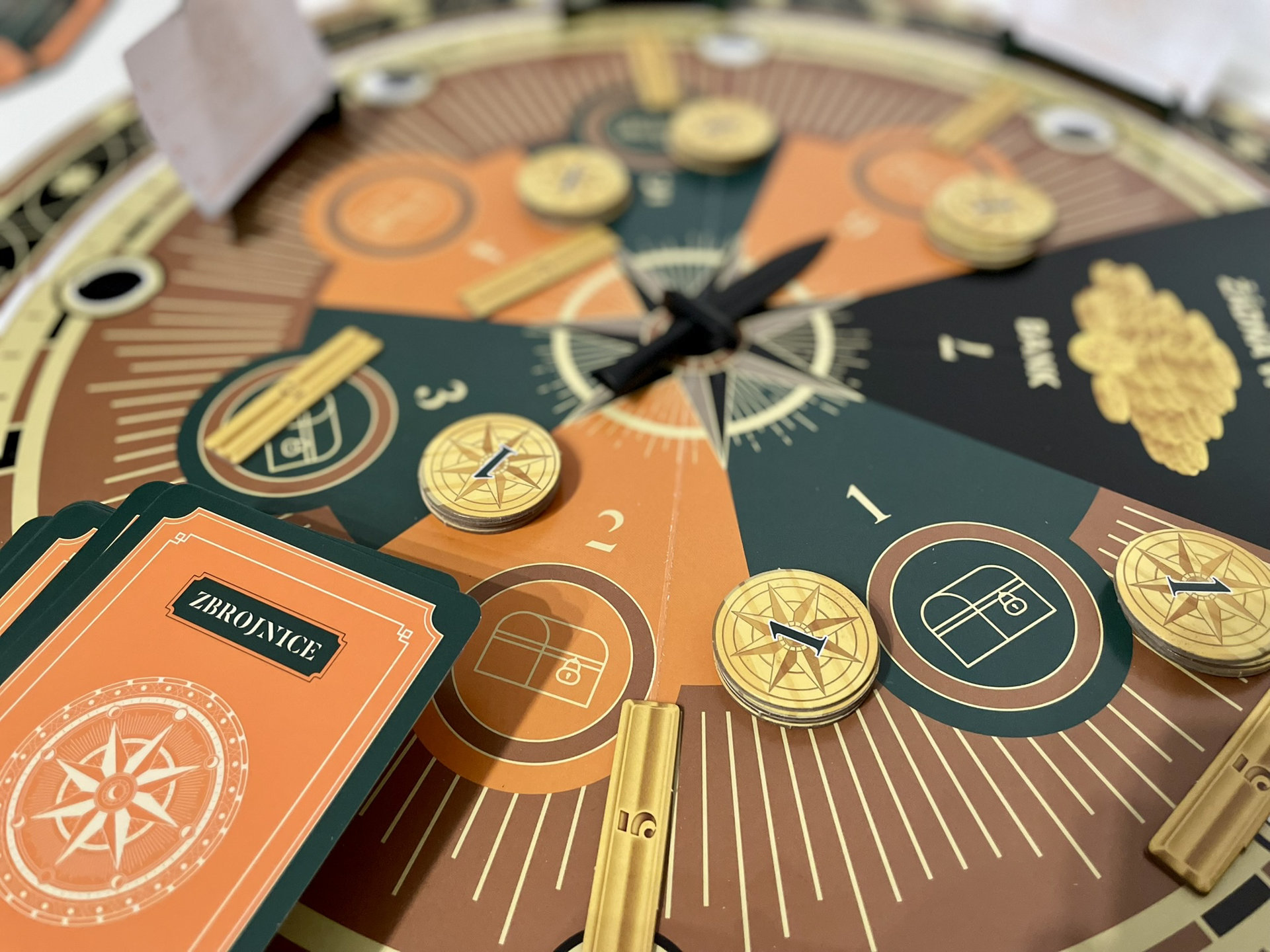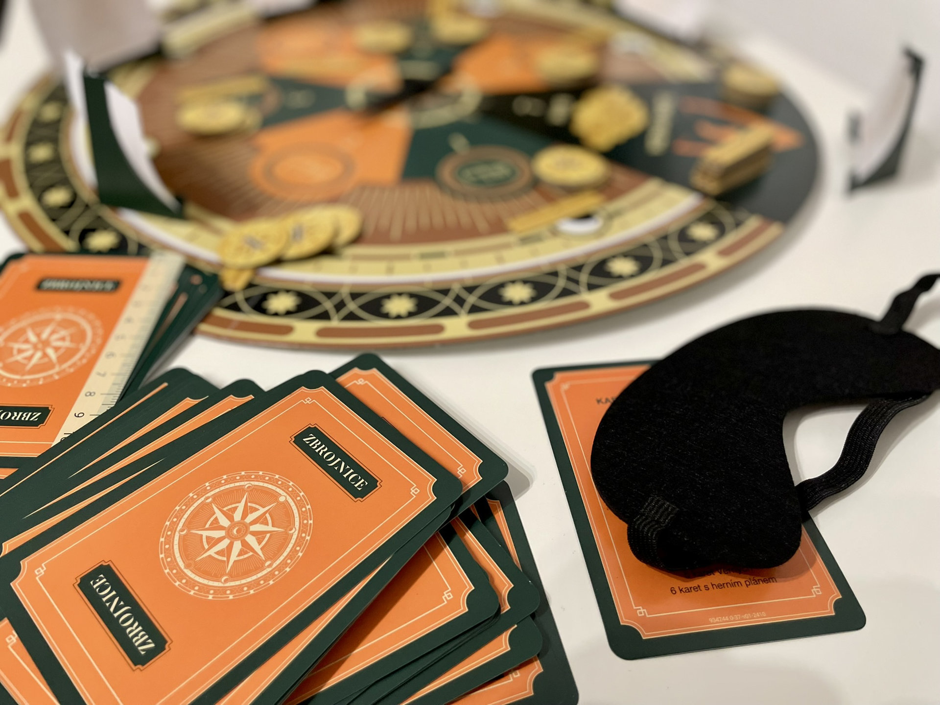 Obsah balení: Kulatá hrací deska s otočnou dýkou, 32 karet s misemi, 32 karet se zbrojnicí, 11 karet s rolemi, 12 karet s odměnami, 30 zlaťáků, 15 zlatých cihel, 48 hlasovacích lístků, 6 hlasovacích stojánků, 6x páska přes oči, kompletní a stručná pravidla hry.